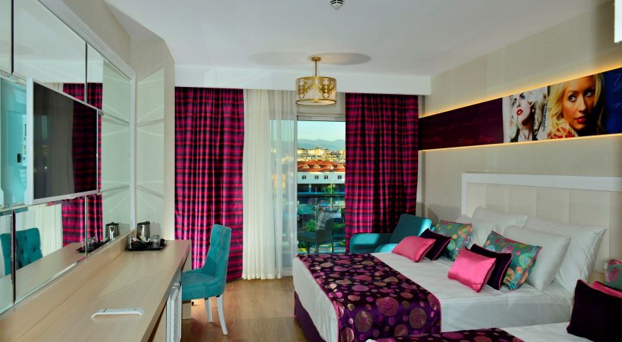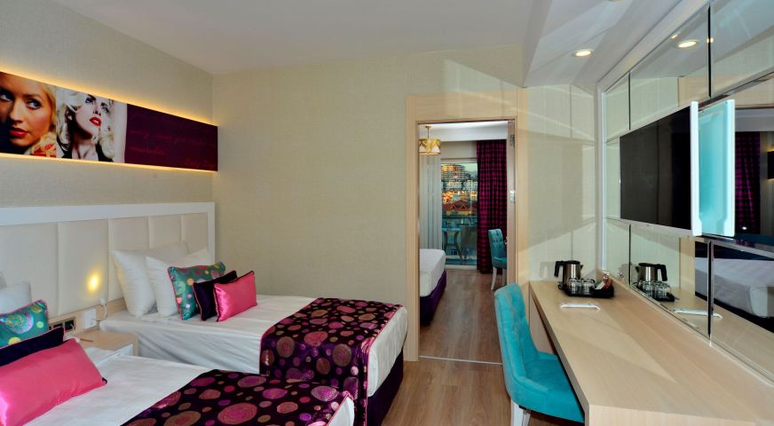 Делукс стаи с изглед градина (land view), страничен изглед море или море. 30-32 кв. м. Балкон 4 кв. м. Максимален капацитет 3 възрастни и 1 дете.