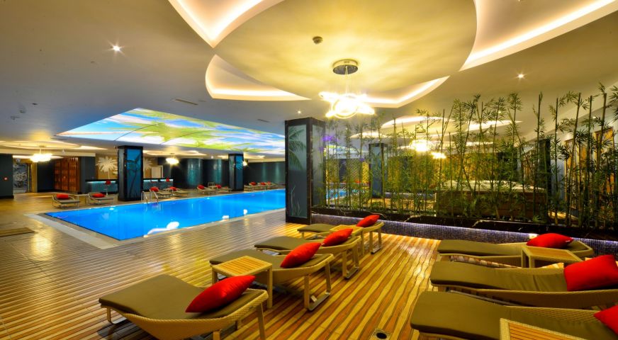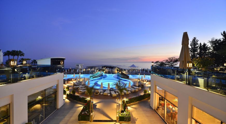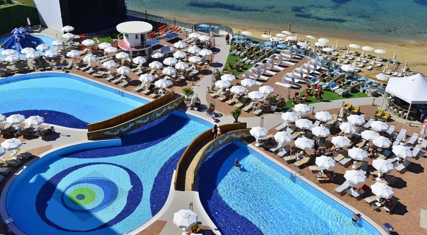 Вътрешен и външен басейн, басейн с водни пързалки, детски вътрешен и външен басейн. Анимация, игри, шоу програми, спортни забавления, детски клуб.