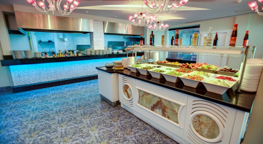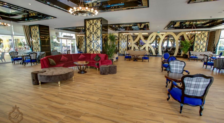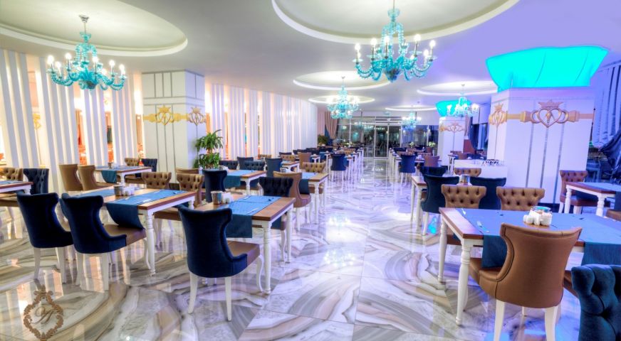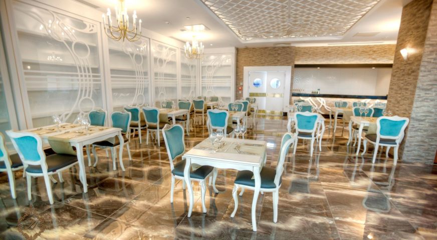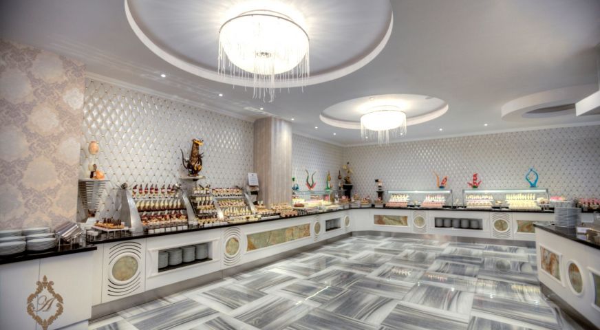 Основен ресторант с отворен бюфет, турски а ла карт ресторант, лоби и пиано бар, бар край басейна, плажен бар.