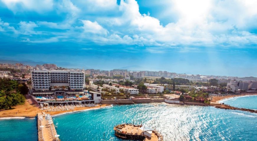 На 98 км. от летището в Анталия и на 22 км. от центъра на Алания.