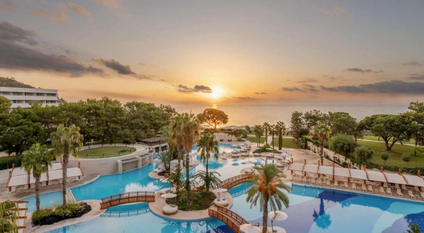 На разположение на гостите са 2 основни ресторанта - "Тюркоаз" (закуска, обяд и вечеря); "Веранда" (само закуска и вечеря); 6 а-ла-карт ресторанта (при настаняване от мин. 4 нощувки, едно посещение с предварителна резервация: турски, далекоизточен - безплатно; американски, международен, италиански, рибен - платено), детски ресторант, снек ресторанти, 9 бара, сладкарница, дискотека, 6 открити басейна, закрит басейн (с подгрев), Аквапарк (10 пързалки за възрастни, 5 за деца), кинозала, Спа център, фризьорски салон, магазини, пералня, химическо чистене, лекарски кабинет, 4 конферентни зали.