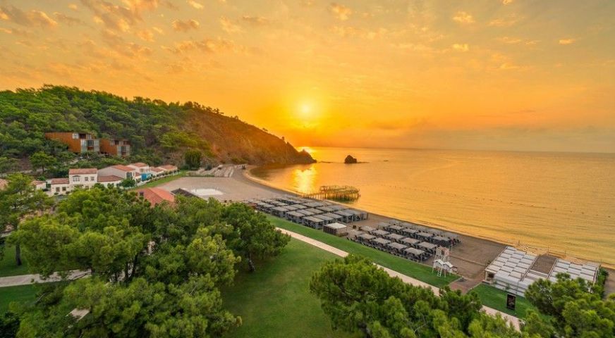 Хотелът е разположен на 73 км от летището в гр. Анталия, на 17 км от гр. Кемер, в селището Текирова, на брега на морето.