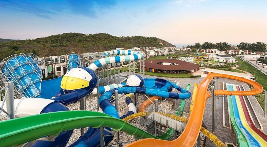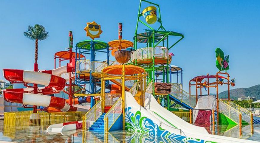 детски басейн, детски аквапарк с 5 водни пързалки, детски ресторант, детска площадка, анимация, приключенски парк (въжен парк, стена за катерене, Free Fall, Zipline, от 7-17 години)