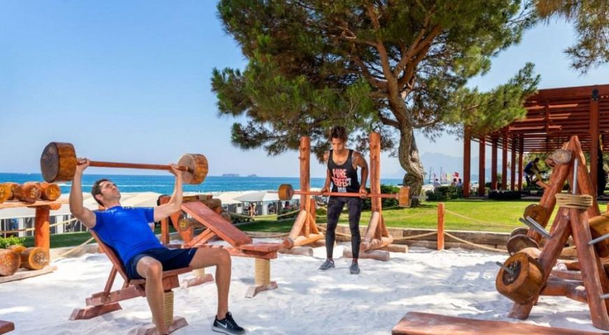 урска баня, сауна, парна баня, тропически душ, фитнес, богата анимационна програма с шоу програми, тематични партита, известни артисти, музика на живо, дискотека, групови занимания (йога, пилатес, аеробика, Kаngoo Jumpс), водна гимнастика, водно поло, дартс, бадминтон, боча, плажен волейбол, баскетбол, мини футбол, тенис на маса, стена за скално катерене, тенис корт (3 корта с изкуствена трева), курсове по танци, безплатен трансфер и вход на територията на парка THE LAND OF LEGENDS KINGDOM HOTEL, WI-FI.