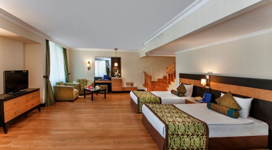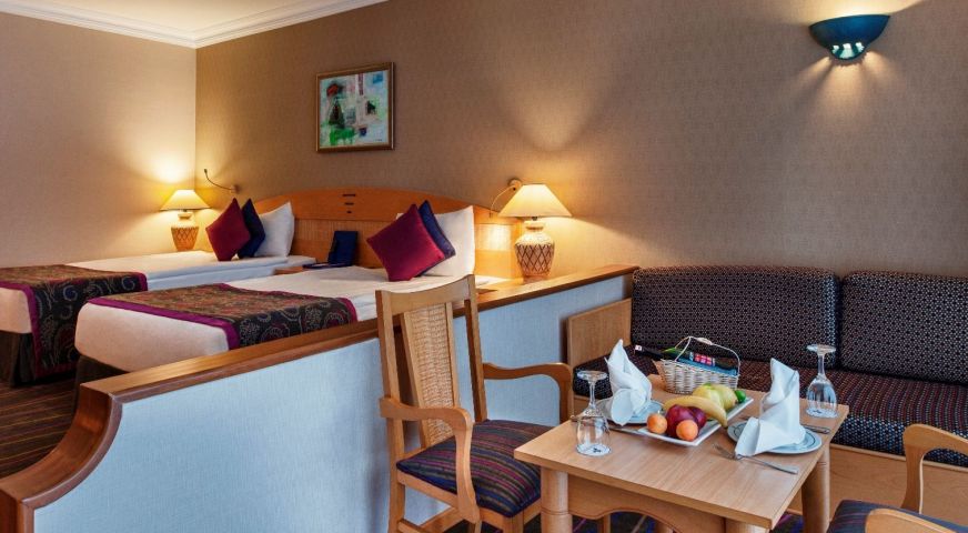 Всяка стая е оборудвана с климатизация, сателитна телевизия, минибар, телефон, сейф, сешоар, халат и чехли. Стаите са с балкон/тераса.