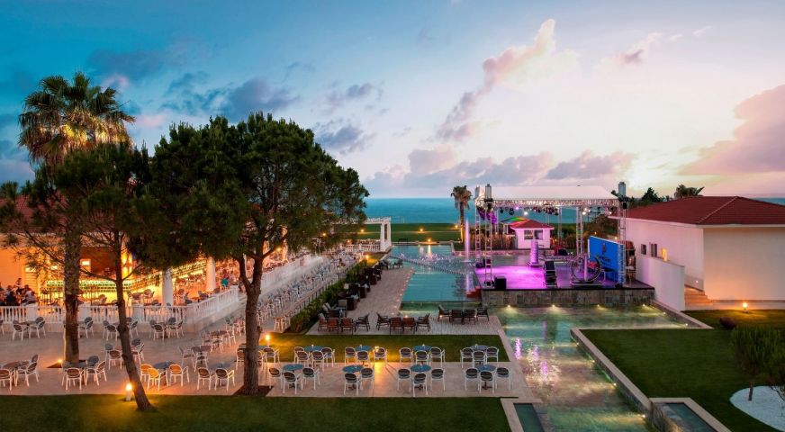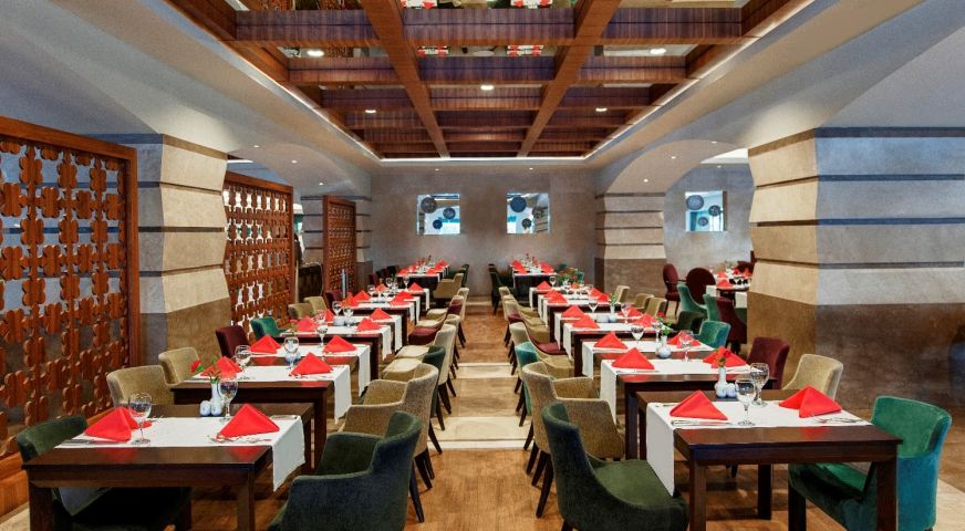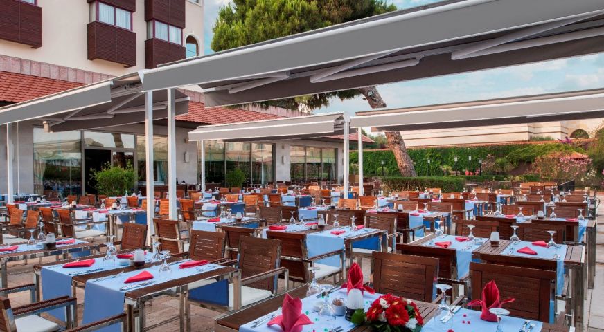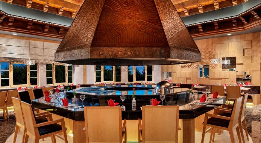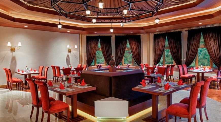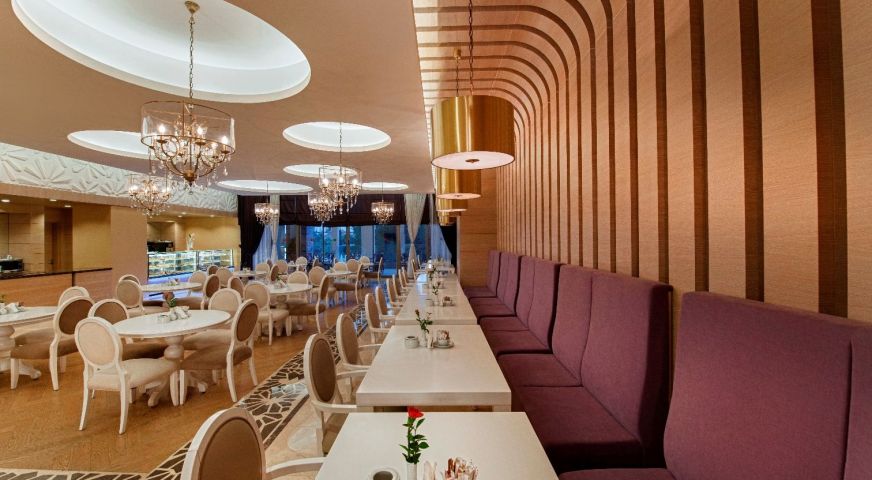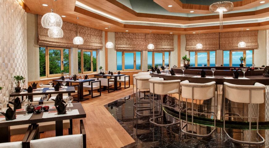 Основен ресторант, а ла карт ресторанти за китайска, турска, италианска кухня, бар на плажа, бар край басейна, нощен бар, лоби бар.