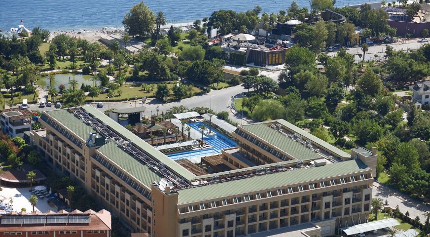 Хотелът е разположен на 55 км от летището в гр. Анталия, в Кемер, на 75 м през пътя от собствения си плаж.