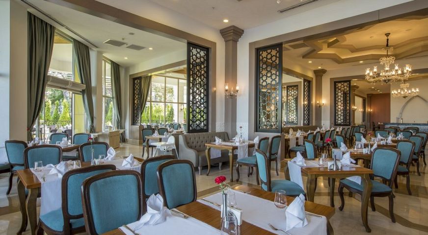 Работно време на основния ресторант: Закуска 07:00-11:00, обяд 12:30-14:30, вечеря 19:00-21:30.