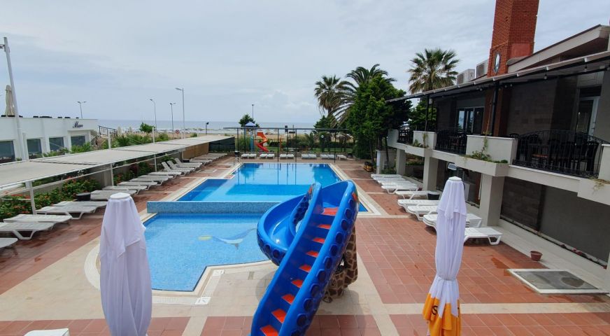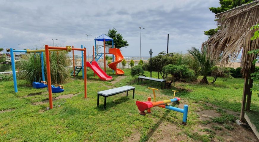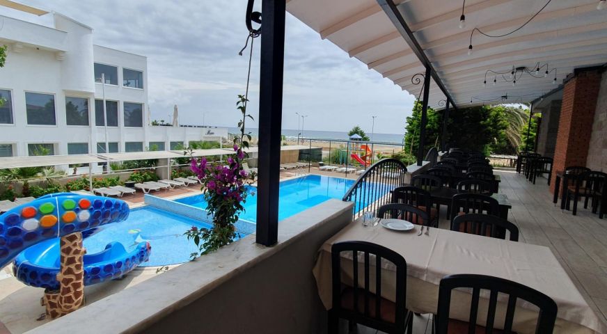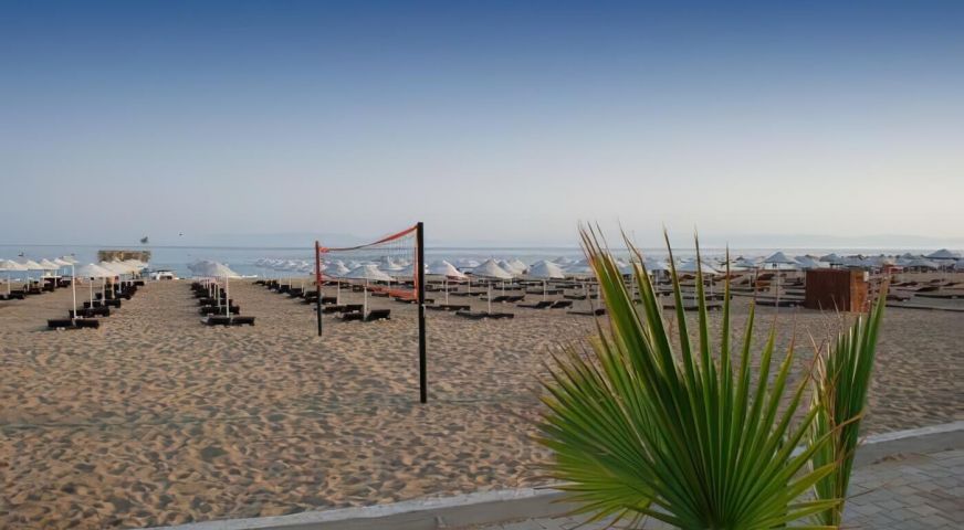 ПЛАЖ: Собствен, пясъчен – чадъри и шезлонги на плажа и при басейна – безплатно.