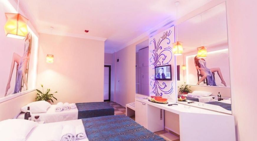 Външен басейн, детски басейн, детска площадка, детски клуб, гимнастика, плажен волейбол, анимация, вечерни програми. Водни спортове, сауна и турска баня срещу доплащане.