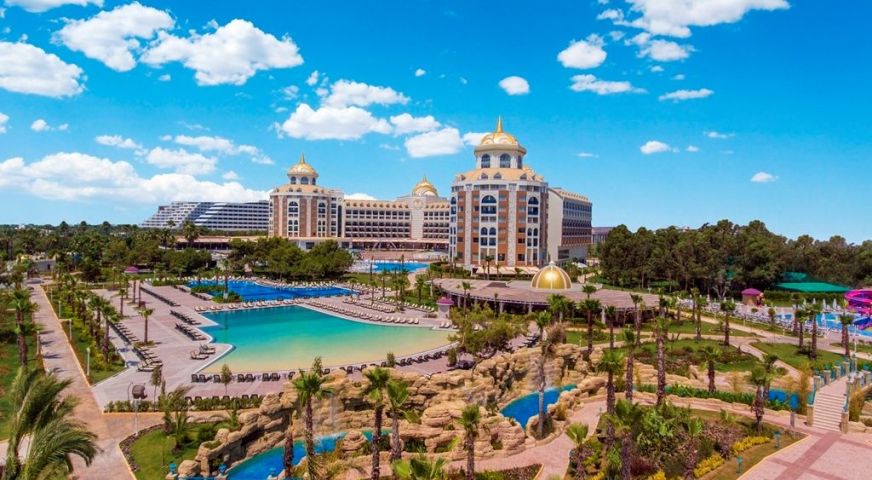 В Лара, на 10 км от центъра на Анталия и на 15 км от летище Анталия. Хотелът е разположен на площ от 112 000 м2., с голяма градина и собствена плажна ивица, основно реновиран 2016 г.