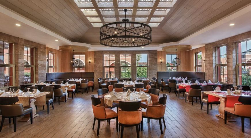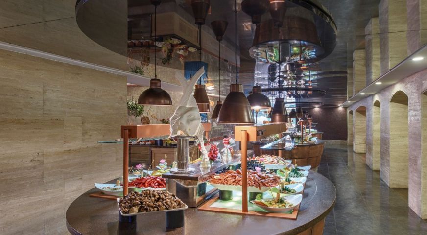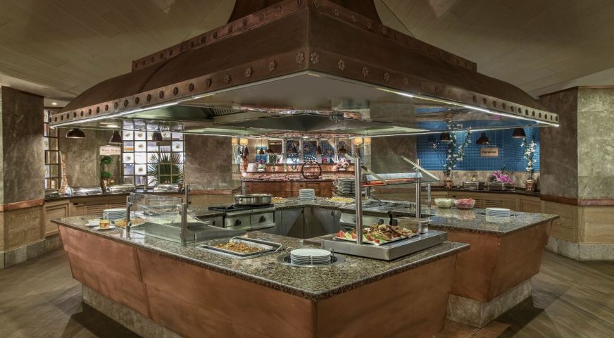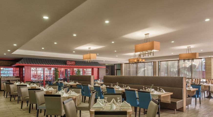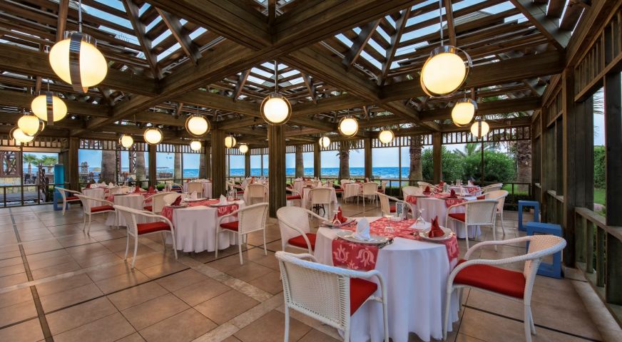 Основен ресторант на All Inclusive база. 6 а-ла-карт ресторанта - турски, италиански, китайски, барбекю, рибен, мексикански, детски ресторант, 9 бара.