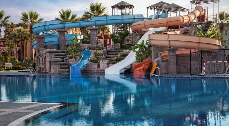 СпортГлавен басейн с водни пързалки, релакс басейн, вътрешен басейн и детски с безплатно ползване на шезлонги, матраци и чадъри. Водни спортове, тенис на маса, степ аеробика, тае бо, плажен волейбол, баскетбол, мини футбол, бадминтон, спортни състезания.