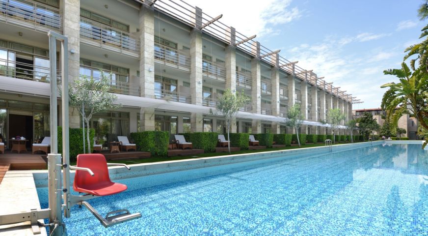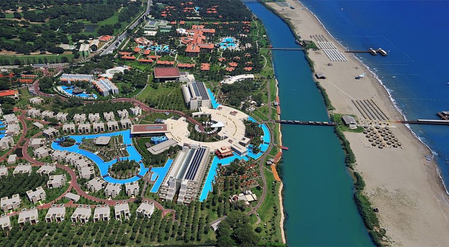 На 7 км. от Белек и на около 40 км. от летището в Анталия. Хотелът се състои от основна сграда и отделни вили.