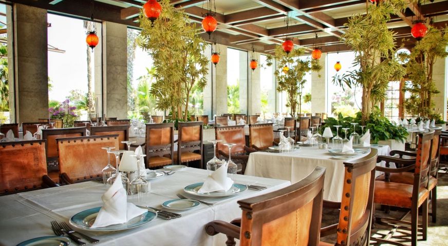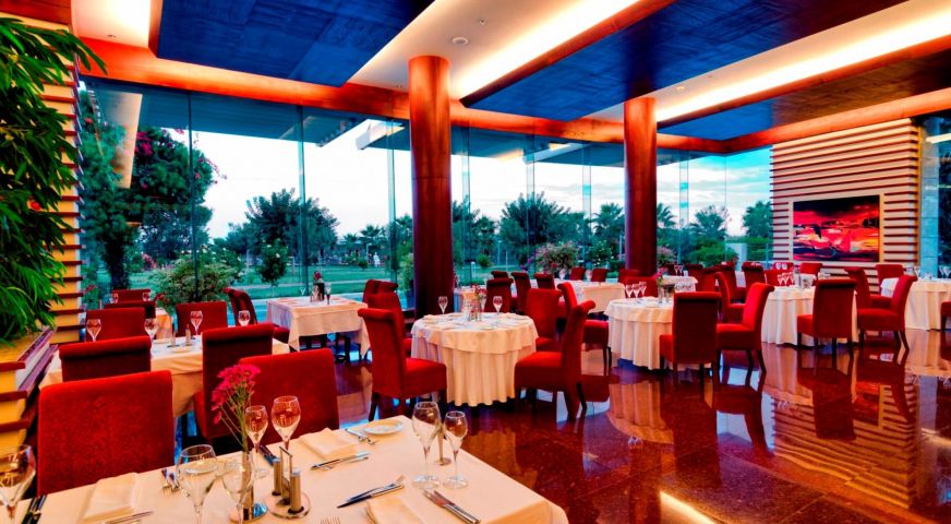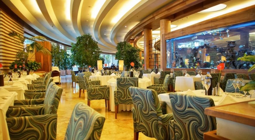 Основен ресторант, а ла карт ресторанти за азиатска, френска, турска, италианска кухня, плажен бар, бар на басейна, караоке.