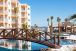 климатик, телевизор, DVD плеър, CD плеър, балкон, мини бар, сейф, баня с вана, сешоар, 24 ч. room service, почистване на стаите - всеки ден, смяна на спалното бельо - 3 пъти в седмицата, смяна на хавлиите – всеки ден. Апартаментите са снабдени с напълно оборудвана кухня и разполагат с една, две или три спални. На територията на комплекса може да се наеме само помещение (стая, апартамент или къща), без да се ползва храна и напитки.