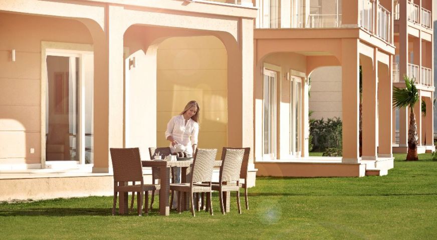 Хотелът се простира на територия от 40 акра и разполага с 6 вида апартамента – Classic Suite (48м2), Junior Suite (73м2), Superior Suite (72м2), Classic Penthouse (115 м2), Junior Penthouse (117 м2), Superior Penthouse (131 м2), 11 външни басейна, 3 вътрешни басейна, 8 детски басейна, 2 тенис корта, волейбол, баскетбол, миниголф, детски клуб, целодневна анимация, детско игрище, джакузи, аквапарк, шопинг център, основен ресторант, 4 а-ла-карт ресторанта, 7 бара, интернет салон, игрална зала, фитнес център, салон за красота, СПА център, турска баня, сауна, парна баня, водни спортове, безплатен Wi-Fi интернет, голф игрище с 18 дупки.