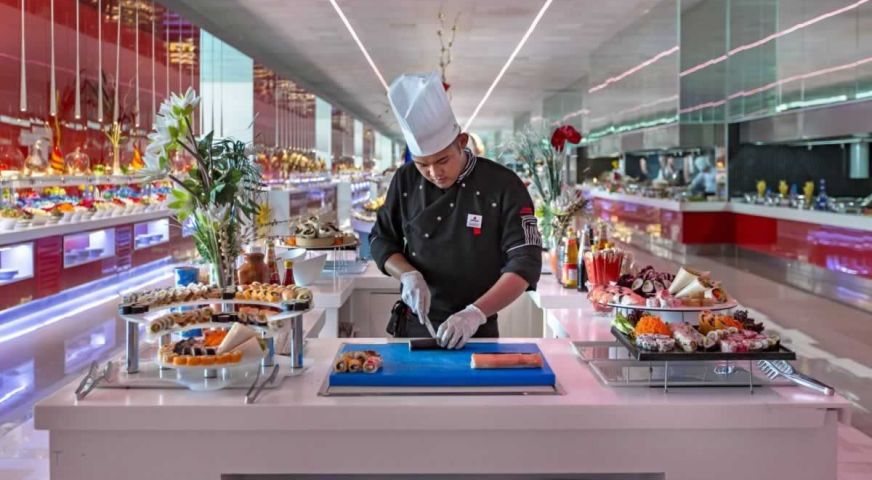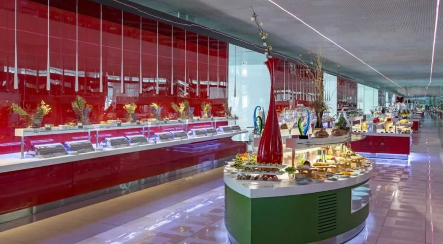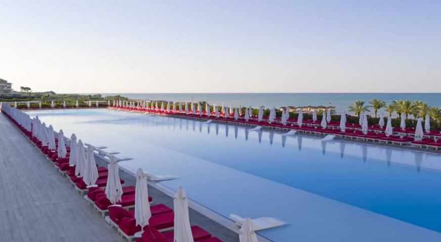 основен ресторант, диетично меню, 6 ресторанта a-la-carte (турски, рибен, италиански - резервацията се заплаща; международен, японски, романтичен ресторант, ресторант Blind - с предварителна резервация, платено (меню)), 7 бара, 3 открити басейна, закрит басейн (работи през зимния период), 4 водни пързалки, лекарски кабинет, SPA-център, фризьорски салон, търговска част, пералня, химическо чистене, 16 конферентни зали (за 40-2100 чов.)