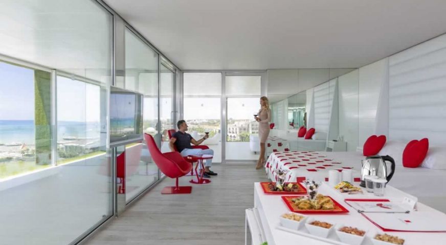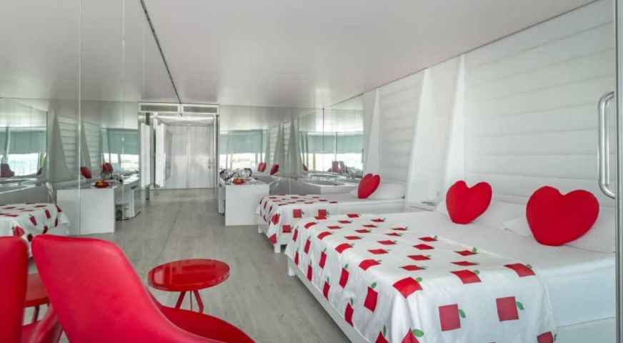 джакузи, душ с парен ефект, сешоар, халат и чехли (по запитване), централен климатик (Main Building, в определени часове), ивидуален климатик (Villas), телевизор, телефон, мини-бар (безалкохолни напитки и бира - зарежда се ежедневно, безплатно; макси-бар - платено), сейф (безплатно), електрическа кана (набор за кафе и чай, само във Villas), подова настилка - PVC покритие (Main Building), епоксидно покритие (Villas), балкон (с легло - Main Building), тераса (Villas), безжичен интернет - безплатно, почистване на стаята - ежедневно, смяна на спалното бельо - 2 пъти седмично, изменение на LED осветлението, room service (24 часа, платено)