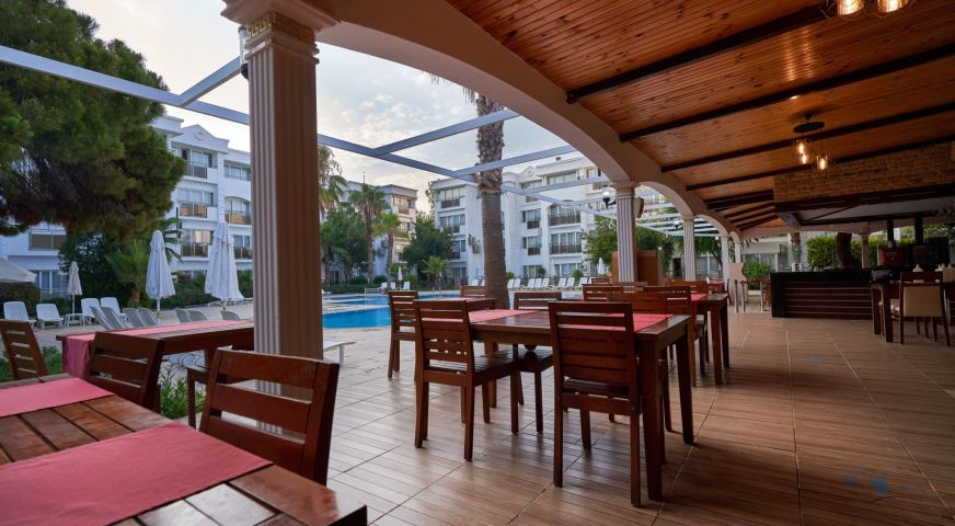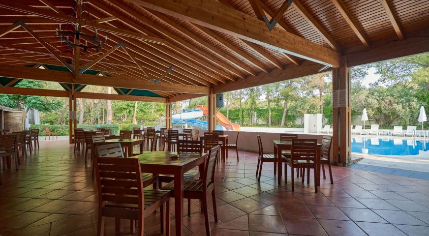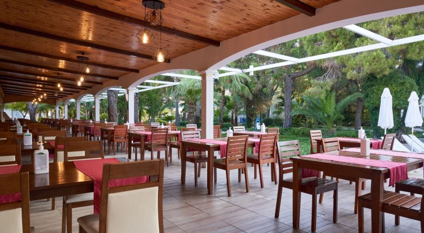 Основен ресторант с отворен бюфет, снек ресторант, бар на басейна, бар в градината, плажен бар.