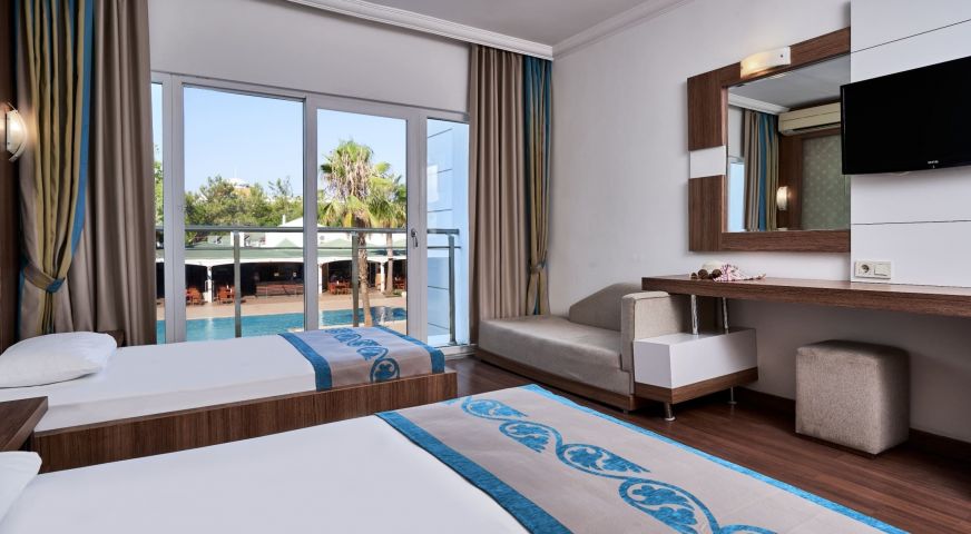 Основен басейн, релакс басейн, водни пързалки, плажен волейбол, водна гимнастика, тенис на маса, аеробика, шоу програми, тенис на маса, турска баня, сауна, фитнес. Детска дискотека, мини клуб, анимация.