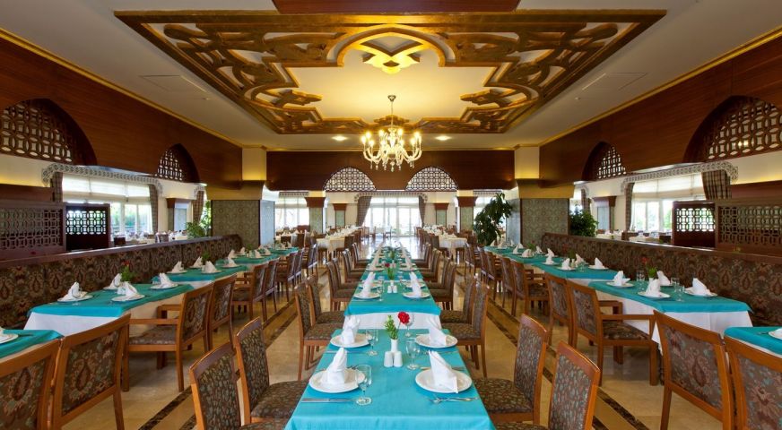 Основен ресторант, а ла карт ресторанти - турски, стек хаус, италиански, рибен. Сладкарница, лоби бар, бар на басейна, плажен бар, дикотека, кафене.