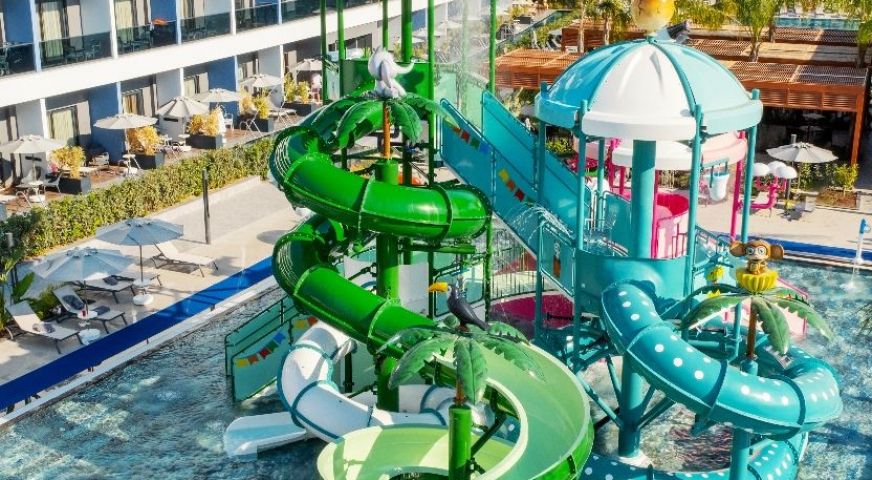 Вътрешен и външен басейн, релакс басейн, детски басейн, аквапарк, анимация, спортни занимания през деня, вечерни шоу програми, партита, музика на живо.