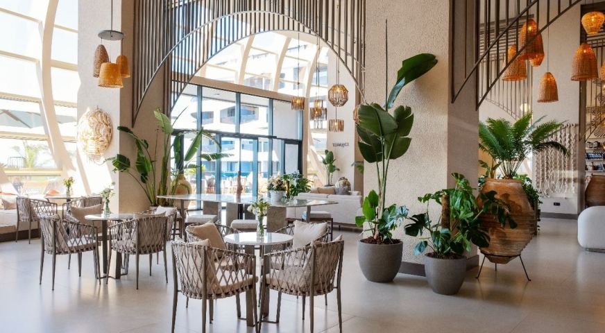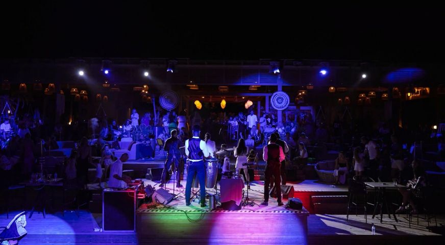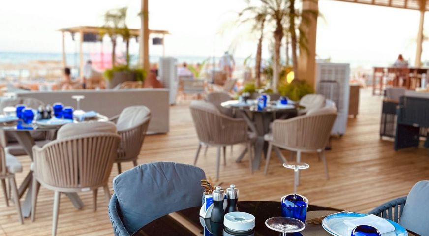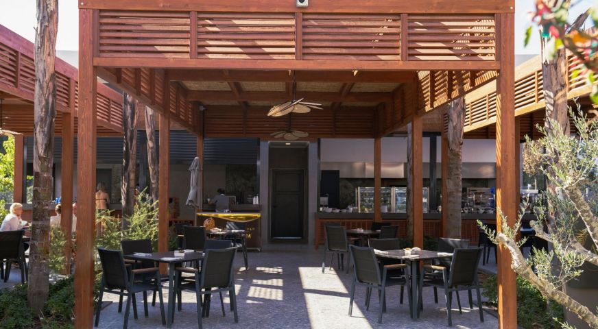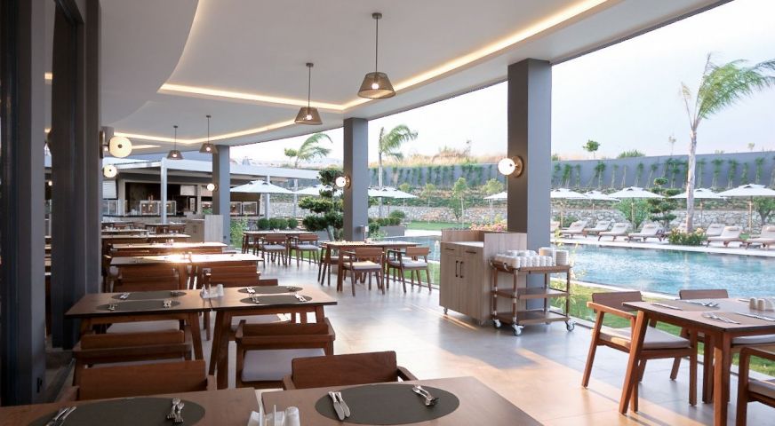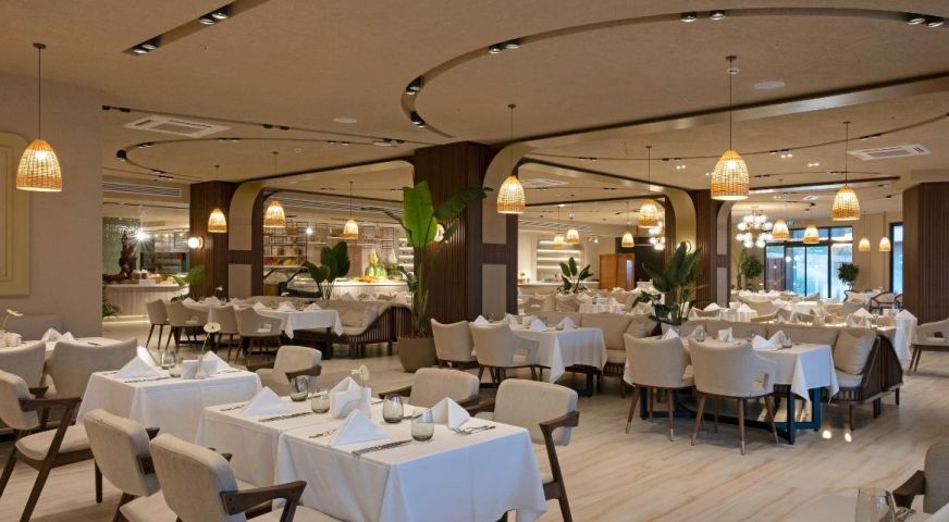 Основен ресторант - отворен бюфет. А ла карт ресторанти - ROUGE ROOF за турска кухня, MARE за морска, възможност за специална вечеря на плажа (с доплащане). Лаундж и тераса бар, бар край басейна, кафене, бар на плажа, бар към детския клуб в аквапарка.