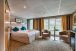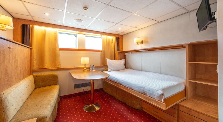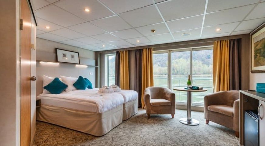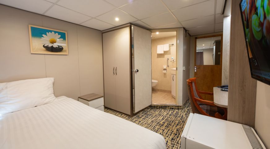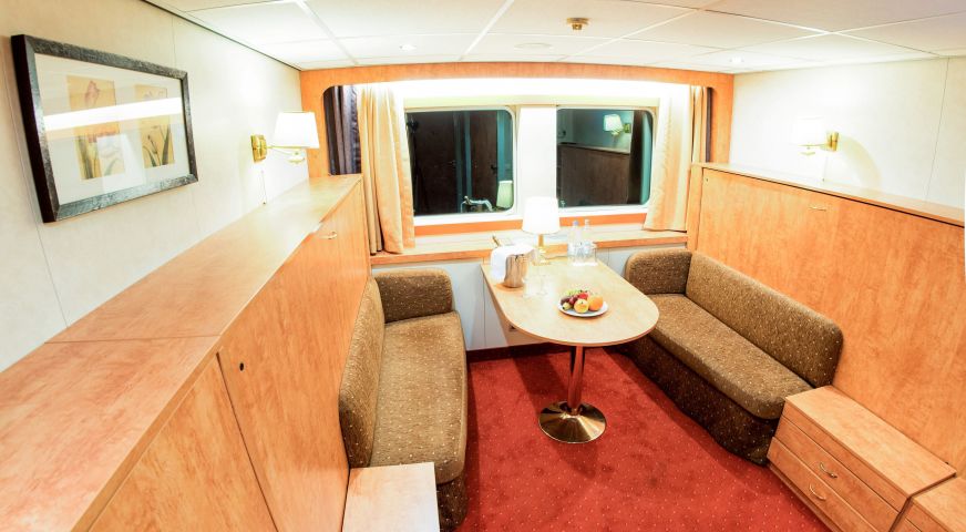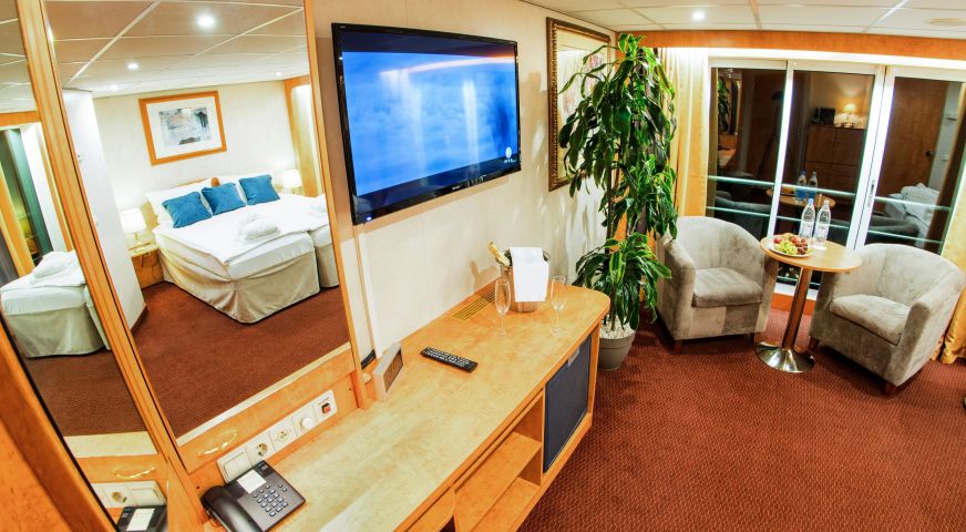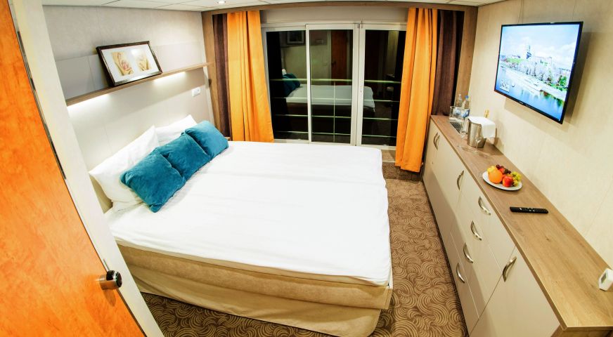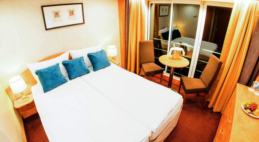 На долна и средна палуба има каюти с прозорец, който не се отваря. На средна и горна палуба са разположени каюти с големи френски прозорци, които се отварят (плъзгащи се). Каютите са около 14 кв. м. и са оборудвани с климатик, телевизор, телефон, сешоар, сейф. Суитите са около 21 кв. м. и имат още минибар и кафемашина.