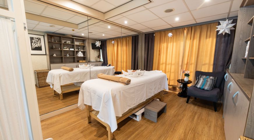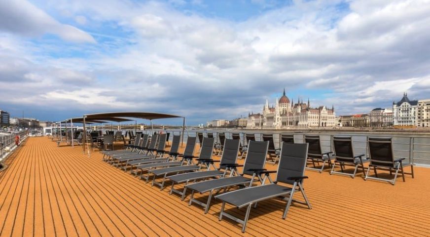Най-горната четвърта палуба е открита с шезлонги, бар и фитнес зона.