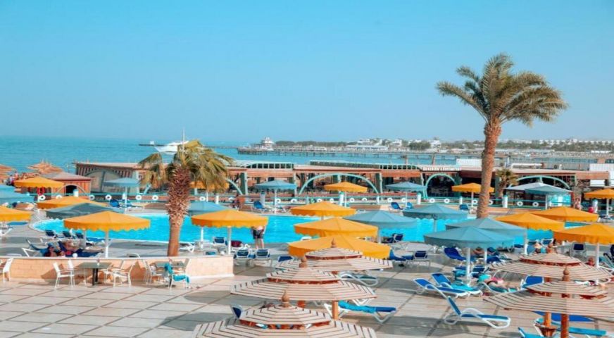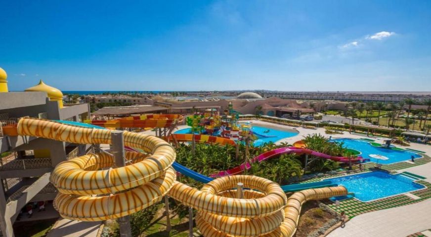 Aladdin Beach Resort 4* се намира на самия бряг на Червено море, в курортната зона на Хургада. Разположен е на около 8–12 км от международното летище и на приблизително 15 км от центъра на града. Хотелът е част от комплекс заедно с съседните Jasmine Village и Ali Baba Palace, с които споделя определени удобства.
