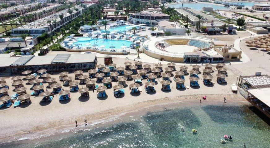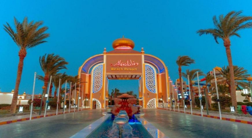 Aladdin Beach Resort 4* се намира на самия бряг на Червено море, в курортната зона на Хургада. Разположен е на около 8–12 км от международното летище и на приблизително 15 км от центъра на града. Хотелът е част от комплекс заедно с съседните Jasmine Village и Ali Baba Palace, с които споделя определени удобства.