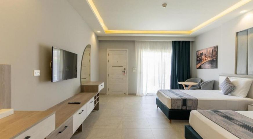Хотелът разполага с общо 439 стаи, разположени в основна 2-етажна сграда (само рецепция), две 2-етажни корпуса и комплекс от 1-етажни бунгала. Standard room (34-38 м2 вкл. баня и тераса); Superior Garden view room (35 м2 ), Superior Pool view room (35 м2), Family Suite (Garden view, 45 м2 вкл. 2 спални с врата), Family connected (Garden view, 65 м2 вкл. 2 спални с врата ). Всички стаи са оборудвани с климатик, телевизор, телефон, баня с душ/вана, сешоар (по заявка на рецепция), минибар, сейф (безплатно на рецепция), балкон. Почистване на стаите и смяна на кърпи - всеки ден, смяна на спално бельо - 3 пъти седмично.