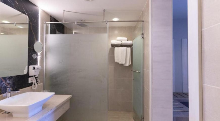 Комплексът предлага разнообразие от услуги и съоръжения, включително просторна градина, открити басейни, водни пързалки, основен ресторант, няколко бара, амфитеатър за анимация, тенис корт, мини голф и магазини. Подходящ е както за семейна почивка, така и за двойки.