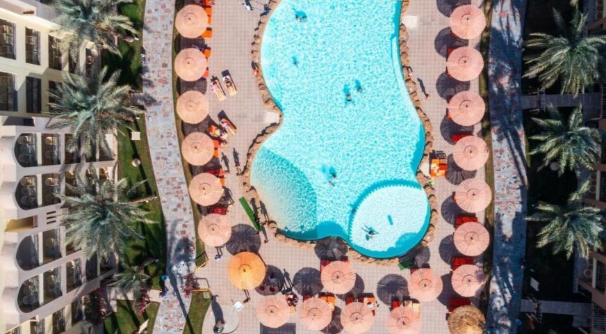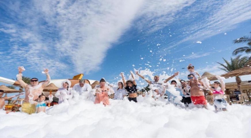 Аквапарк с 4 пързалки за възрастни и 6 пързалки за деца, плажен волейбол, водни спортове, аква център, център за гмуркане, шах, дартс, билярд, тенис на маса, многофункционално игрище.Напълно оборудван детски клуб и детска площадка, включително частен плувен басейн. Предоставят се безплатно чадъри и шезлонги.
