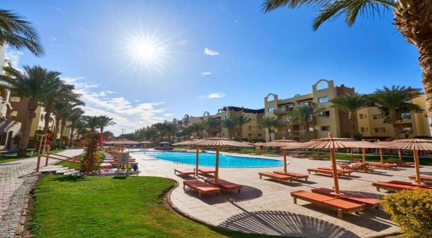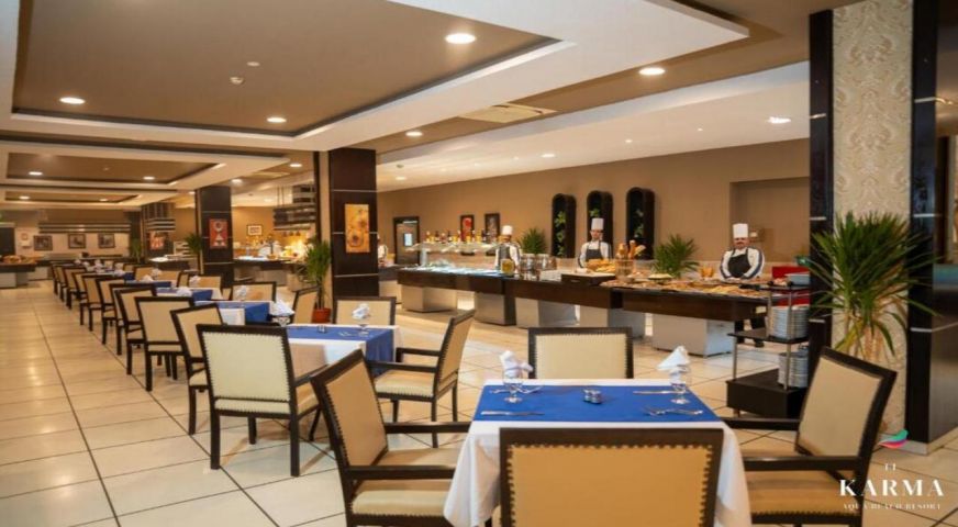 El Karma Aqua Beach Resort се намира в северната част на Хургада, на най-естествения залив, известен със своя спокоен, девствен и бял пясъчен плаж. Разположен между кристално чистите води на Червено море и пъстрия цвят на египетската пустиня, курортът ще ви донесе спокойствие и почивка по време на вашата заслужена почивка.