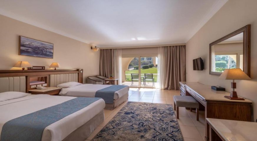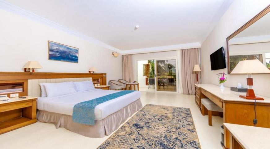Serenity Alpha Beach е елегантен петзвезден хотел, част от Serenity Hotels & Resorts. Разположен в голям зелен комплекс с красива градина, множество басейни и панорамна гледка към морето, той предлага спокойствие, лукс и арабски стил на архитектурата. Идеален за семейства, двойки и почитатели на шнорхелинг, които търсят пълноценна почивка сред природата и морето.