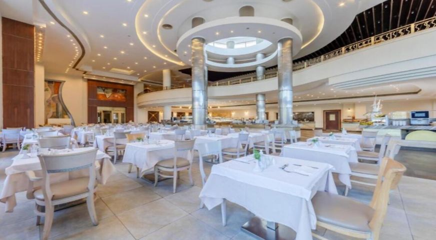 - Основен ресторант – предлага разнообразна интернационална кухня на бюфет с show cooking, тематични вечери и секции за здравословно хранене