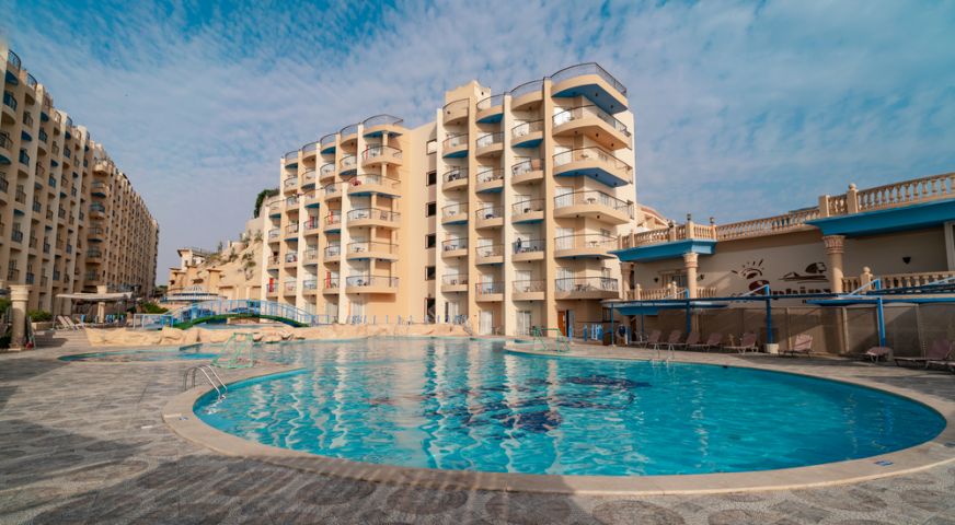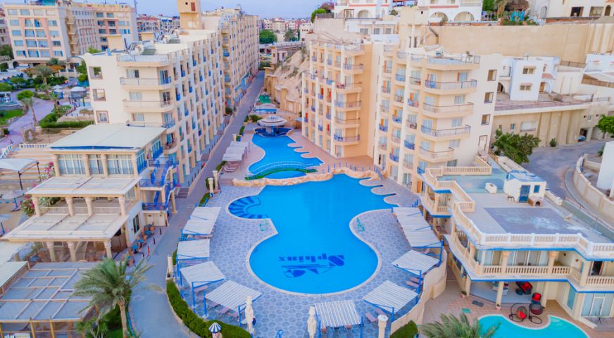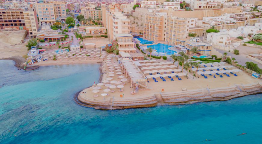 Намира се на брега на морето, 3 км. от центъра на Хургада и на 8 км. от летище Хургада.
