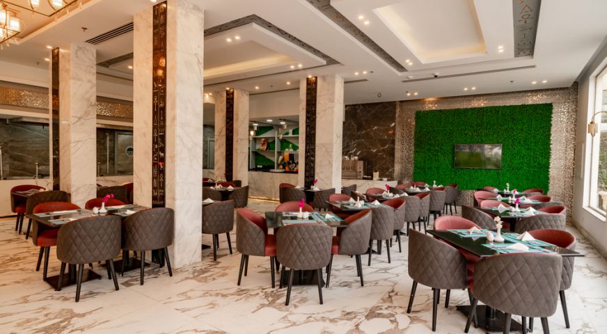 Основен ресторант, 2 а-ла-карт ресторанта ("Luxor restaurant", „Memphis restaurant“ - на плажа с пицaрия), 3 бара, 4 открити басейна (1 отопляем през зимния сезон), СПА център, магазини, Wi-Fi (безплатно – в общите части на хотела).
