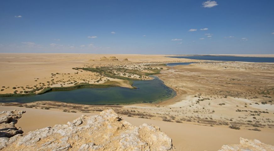 Закуска. Тук ще имате възможност да посетите храма на Александър - Орка и планината на мъртвите, в която са открити гробници от залеза на Древен Египет. Ще се потопите в тюркоазените езера за добив на сол, конкуриращи се с Мъртво море, а плувците ги очаква и минералния извор на Клеопатра. Спирка за душ и обяд в местен ресторант (без включени напитки). Следобед следва сафари в златисто-бялата пустиня със спирки за сандборд по дюните, впечатляващи гледки и места за снимки.Вечеря в местен ресторант без включени напитки. Нощувка.