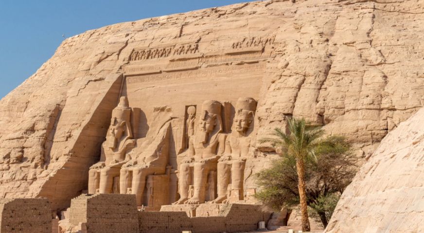 Ранно посещение на храмовете на Абу Симбел (предлага се на място). През 1257 г. пр.н.е. фараон Рамзес II изсякъл два храма в солидната скала на западния бряг на река Нил по повод победата си в битката при Кадеш. Интересен факт е, че поради строителството на язовира Насър се провеждат спасителни операции по проект на ЮНЕСКО и двата храма са разглобени и преместени на платото, на 64м по-високо от оригиналното им местоположение. Храмовете са били открити през 1817 г. от египтолога Джовани Батиста Белзони, който първи влиза във вътрешността им. Комплексът се състои от голям и малък храм и интересен факт около него е, че поради строителството на язовира Насър от 1964 до 1968 г. се провеждат спасителни операции по проект на ЮНЕСКО и двата храма са разглобени и преместени на платото на 64 м по-високо от оригиналното им местоположение. Фасадата на големия храм, който е посветен на бога-слънце Ра е украсена с четири колоса с чертите на Рамзес, носещ двойната корона на Горен и Долен Египет. Статуите са издялани в самата скала, като се е използвал естественият ѝ наклон. Височината им е 20 м, което ги прави лесно видими дори от по-голямо разстояние. Непосредствено до краката на големите статуи могат да се видят по-малки статуи на майката на Рамзес II, любимата му жена Нефертари и някои от многото им деца. Във вътрешната част на храма се намира светилището, където има отново 4 статуи – Птах, Амон-Ра, Рамзес II и Хор. Невероятно е, но е факт, че на 21 октомври и на 21 февруари, слънчевите лъчи проникват в светилището и осветяват само три от скулптурите. Тази на Птах, който е бога на подземния свят, остава винаги на тъмно. Съвсем наблизо до Големия храм се намира т.н. Малък храм или храмът на Хатхор (Hathor) и Нефертари (Nefertari). Това е първия в историята на Египет храм, посветен на царица и освен това големината на женската статуя е същата като на Рамзес, противно на обичаите статуите на жените и децата да са с много по-малки размери.