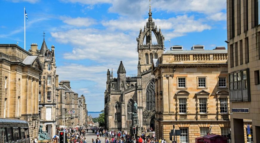 Отпътуване от летище София (Терминал 2) за Единбург с полет на авиокомпания "Ryanair". Пристигане на летището в Единбург. Трансфер до хотела. Настаняване. Туристическа програма в Единбург: дворецът "Холируд Хаус" – кралската резиденция на Шотландия; известната "Кралска миля", където ще се запознаете с историята на старите сгради в града; катедралата "Сейнт Джайлс" от 12 в., в чиито параклис и до днес се събират членове на Ордена на рицарите. Свободно време. Нощувка.
