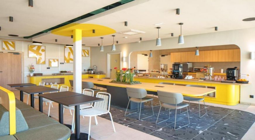 Хотелът разполага с бар, където може да се седне за напитка или леко хапване. Има закуска на шведска маса, включена (срещу такса) в престоя. Предлага също „snack / petite restauration“ – бързи храни. В околността има и външни ресторанти за по-обилни хранения.