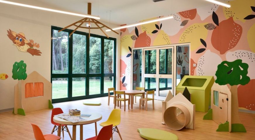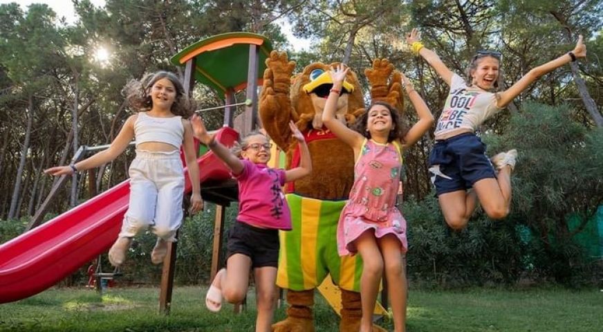 За децата: Спрей парк, водни пързалки, детски клуб, външни и закрити детски площадки. Целодневни занимания за най-малките от 3 годишна възраст и за тийнейджърите (до 13 г.)