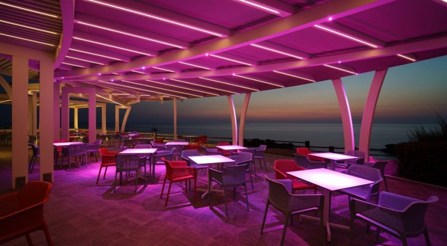На територията на хотела: Комплексът разполага с просторна зона, включваща открит басейн, детски басей, спортни игрища (плажен волейбол, тенис, футбол и др.), анимационна програма за гости и добре поддържани зелени площи. Гостите могат да се насладят на бар и ресторант с панорамна гледка към морето. Хотелът разполага с амфитеатър, който предлага различни представления- мюзикъли и кабарета, както и анимация за гостите. Аеробика около басейна, уроци по гмуркане с възможност за получаване на официален сертификат за свободно гмуркане SSI (Scuba Schools International,) водна гимнастика, танци в нощния бар на хотела, специални занимания за най-малките. На плажа- възможност за практикуване на падел борд и кану каяк. WiFi в общите части на хотела.