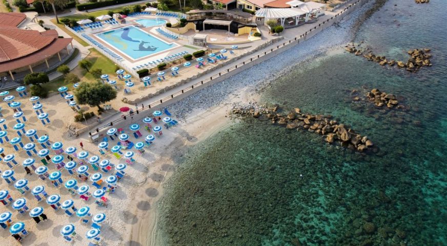 Разположение: Хотелът се намира на самия бряг на Коста дeли Деи (Брегът на Боговете), в близост до известните курорти Тропеа- Перлата на Калабрия и Капо Ватикано. Разположен е в регион, известен с кристално чистото си море, зеленина и живописни гледки. Локацията предлага лесен достъп от летищата Ламеция Терме и Реджо Калабрия, както и до впечетляващите Еолийски острови.