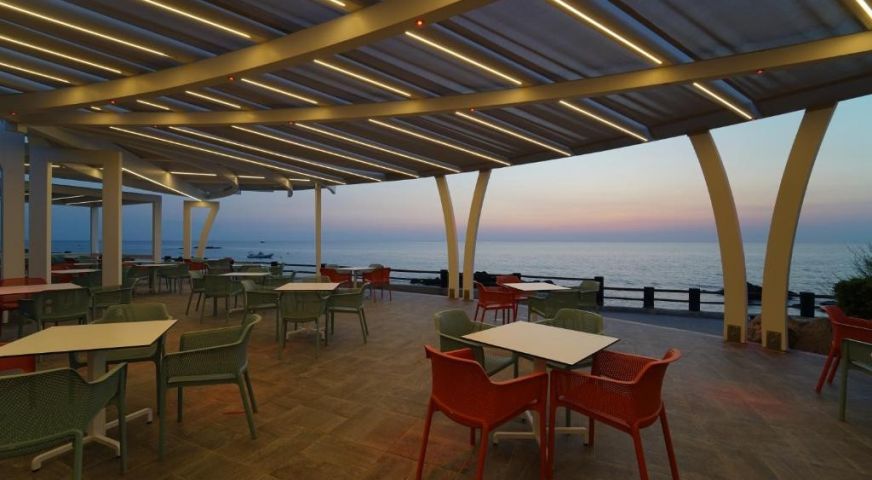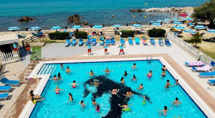 На територията на хотела: Комплексът разполага с просторна зона, включваща открит басейн, детски басей, спортни игрища (плажен волейбол, тенис, футбол и др.), анимационна програма за гости и добре поддържани зелени площи. Гостите могат да се насладят на бар и ресторант с панорамна гледка към морето. Хотелът разполага с амфитеатър, който предлага различни представления- мюзикъли и кабарета, както и анимация за гостите. Аеробика около басейна, уроци по гмуркане с възможност за получаване на официален сертификат за свободно гмуркане SSI (Scuba Schools International,) водна гимнастика, танци в нощния бар на хотела, специални занимания за най-малките. На плажа- възможност за практикуване на падел борд и кану каяк. WiFi в общите части на хотела.