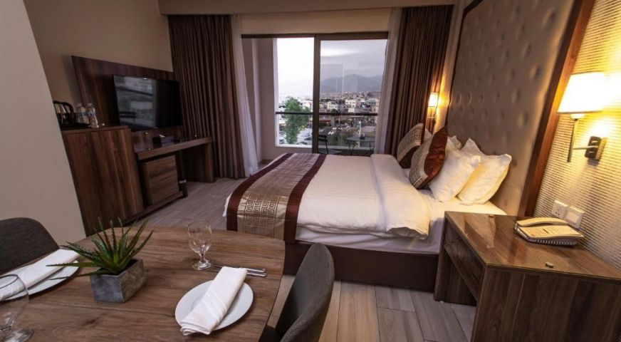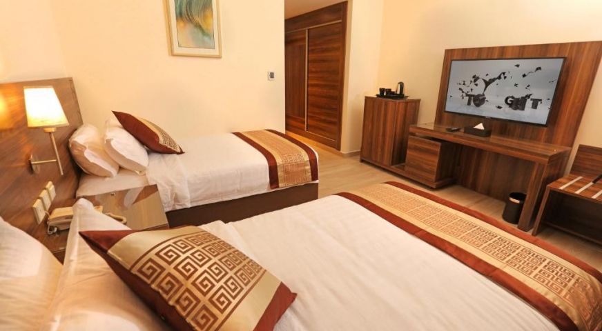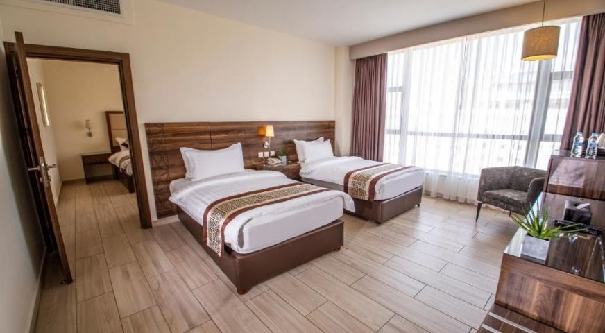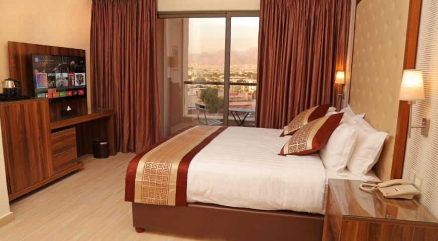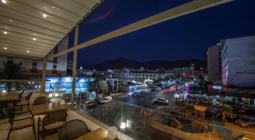 Разположение: Нов луксозен четиризвезден хотел се намира в сърцето на град Акаба, на 10 километра от международното летище „Крал Хюсеин“, на няколко минути пеша до плажа Ал-Гандур (около 700 м) и омайващото Червено море, на 15 минути пеша от крепостта Акаба и на кратко разстояние от всички пазари, магазини, ресторанти и кафенета.