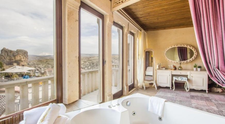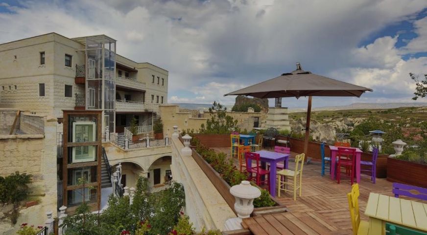 Разположение: Хотелът се намира в град Ортахисар, в центъра на Кападокия, на най-близкото разстояние до всичко, което искате да видите. В непоредствена близост до замъка Ортахисар, най-голямата скална крепост в Турция. Летище Невшехир е на 35 км.